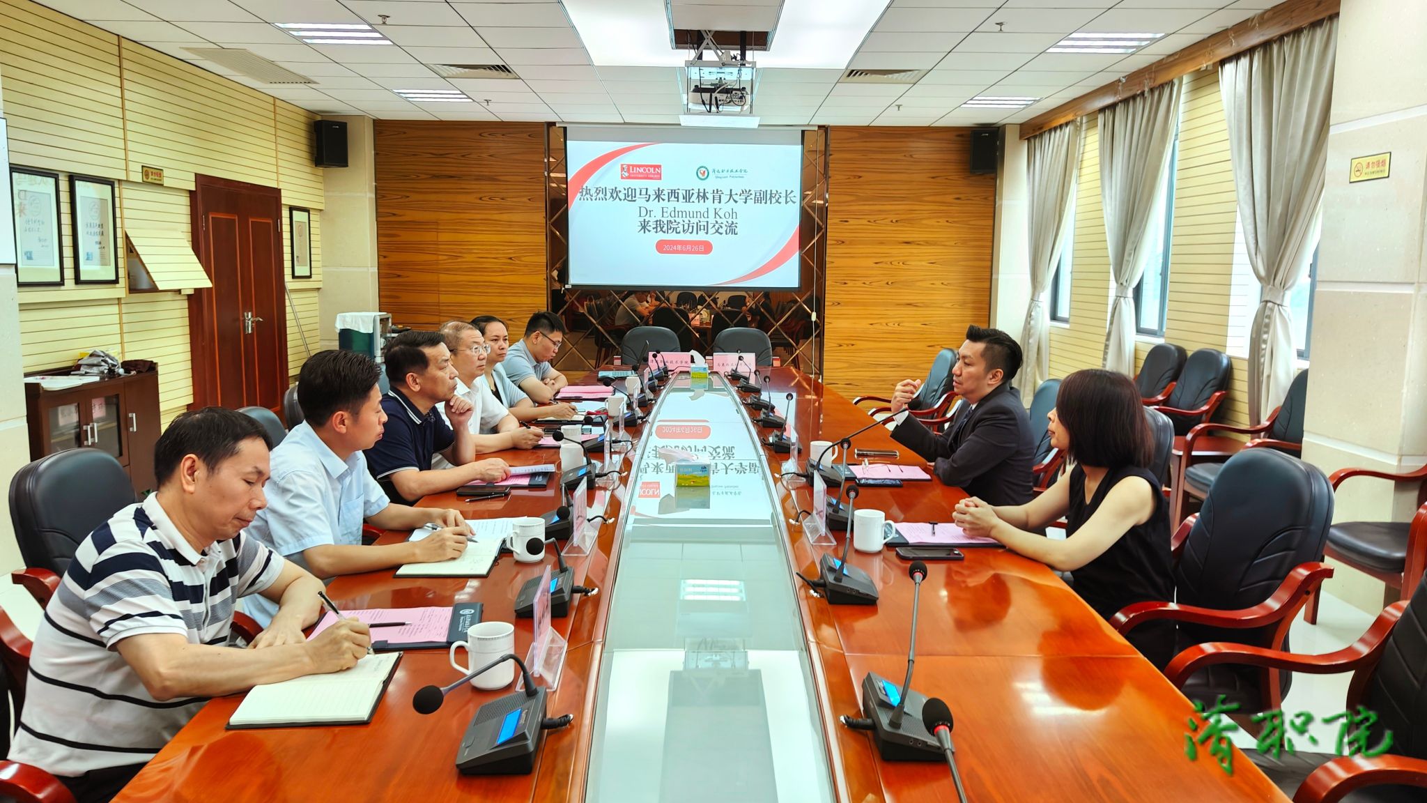 胡刚在座谈会上对Edmund Koh博士和Liny HUANG顾问的来访表示热烈欢迎,并介绍了学院的发展历史、办学特色、专业设置、科研服务以及中外合作等办学情况。Edmund Koh博士对学院的热情接待表示感谢,他就马来西亚林肯大学的历史沿革、学校排名、办学理念、专业人才培养模式以及国际合作等办学情况做了详细的介绍。Edmund Koh博士期待两校在师资团队共建、课程资源开拓、技能竞赛交流以及科研课题合作等方面可尝试多种形式的国际合作与交流。双方对上述合作项目、合作进程及预期目标达成共识,并签订合作备忘录。
