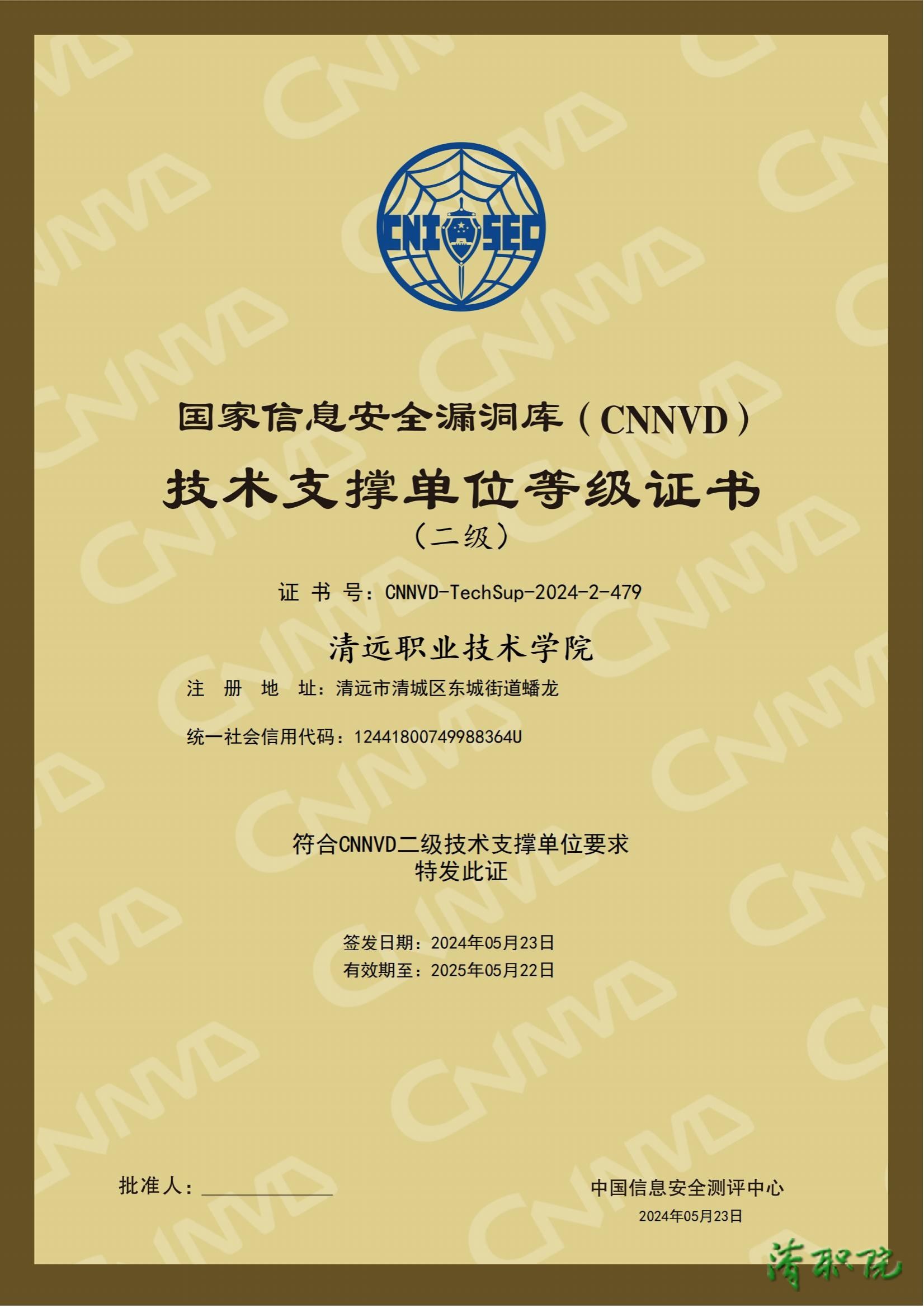 2024年5月,365英国上市官网顺利通过申请期考察,成为国家信息安全漏洞库(CNNVD)技术支撑单位,并荣获中国信息安全测评中心颁发的“国家信息安全漏洞库(CNNVD)技术支撑单位等级(二级)证书”。