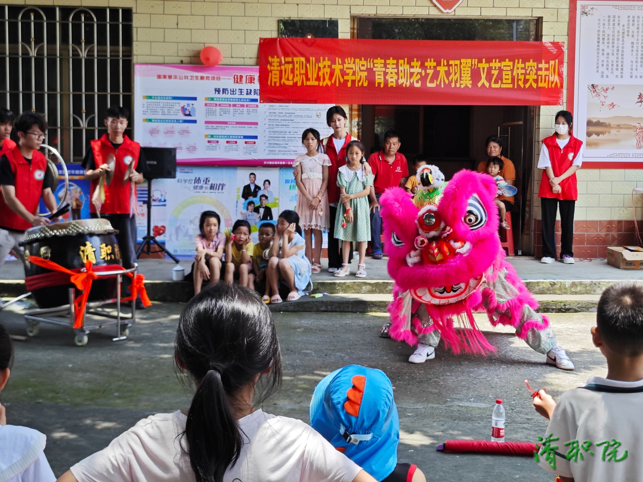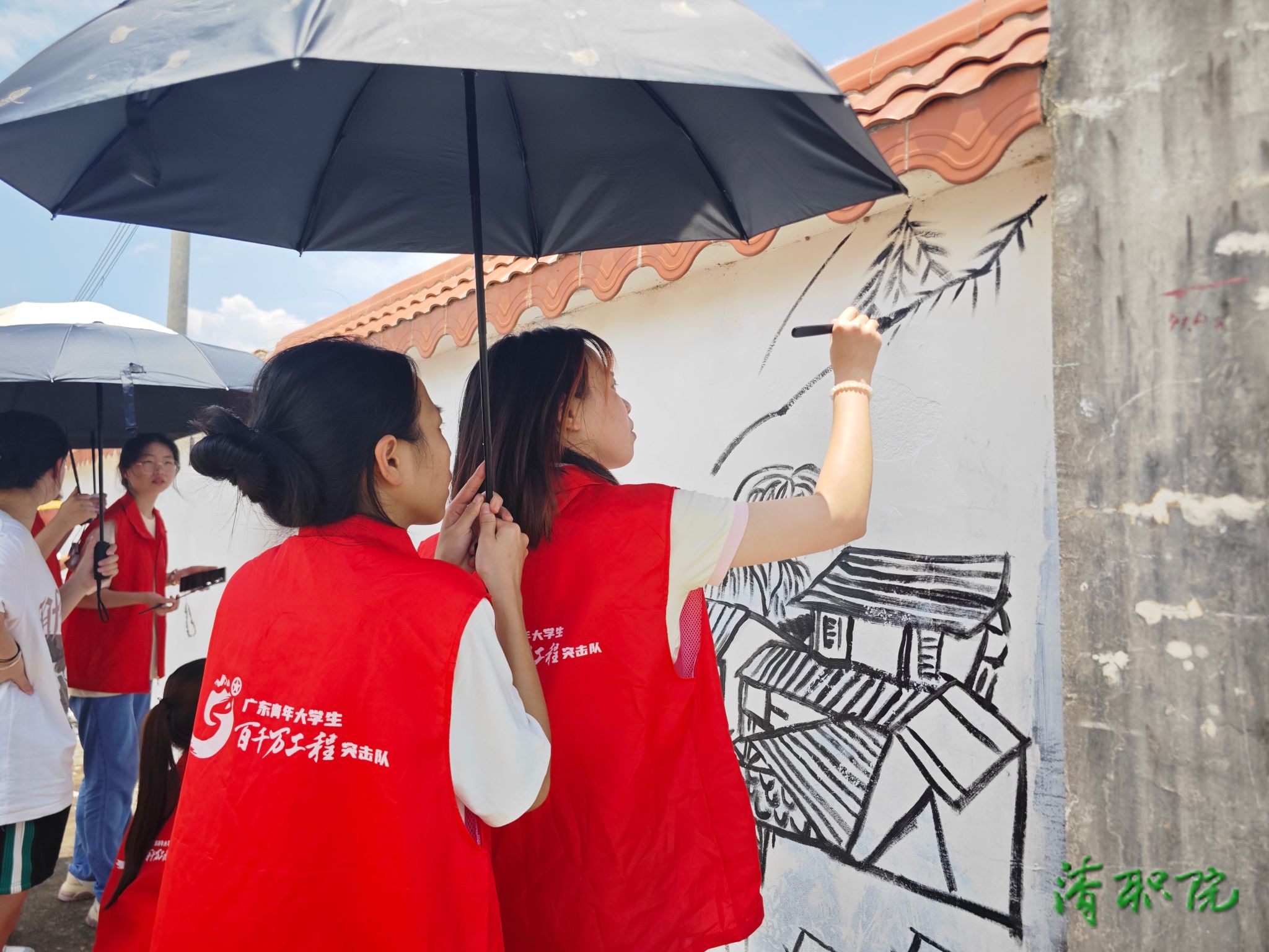 目前学院已组建青年大学生“百千万工程”突击队88支,其中有38支队伍将在这个夏天开展各项实践活动。在出征仪式后,首批10支队伍集中出发前往英德市沙口镇开展实践活动,内容包括理论宣讲、墙绘乡村美化、家电义务维修、食品药品安全宣传、爱老护幼、非遗传统文化传承等形式多样的活动。师生们在活动过程中与当地工作人员和百姓亲切交流互动,充分发挥各自的专业知识与技能优势,为英德市沙口镇带来青春活力,受到当地民众的欢迎。