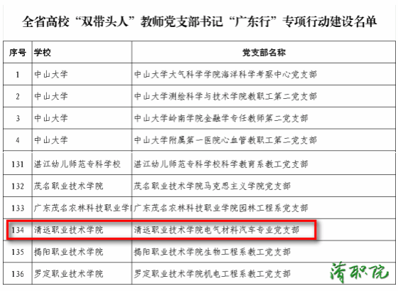 近日,365英国上市官网电气材料汽车专业党支部成功入选全省高校“双带头人”教师党支部书记“广东行”专项行动建设支部。
